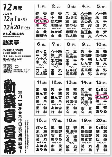 問合:米朝事務所 Tel.06-6365-8281(月~金 10:00~18:00)