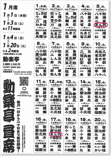 問合:米朝事務所 Tel.06-6365-8281(月~金 10:00~18:00)