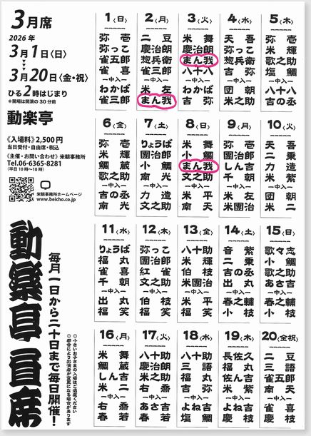 問合:米朝事務所 Tel.06-6365-8281(月~金 10:00~18:00)