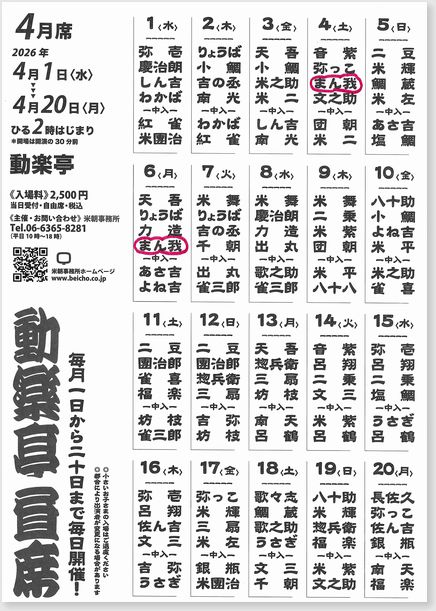 問合:米朝事務所 Tel.06-6365-8281(月~金 10:00~18:00)